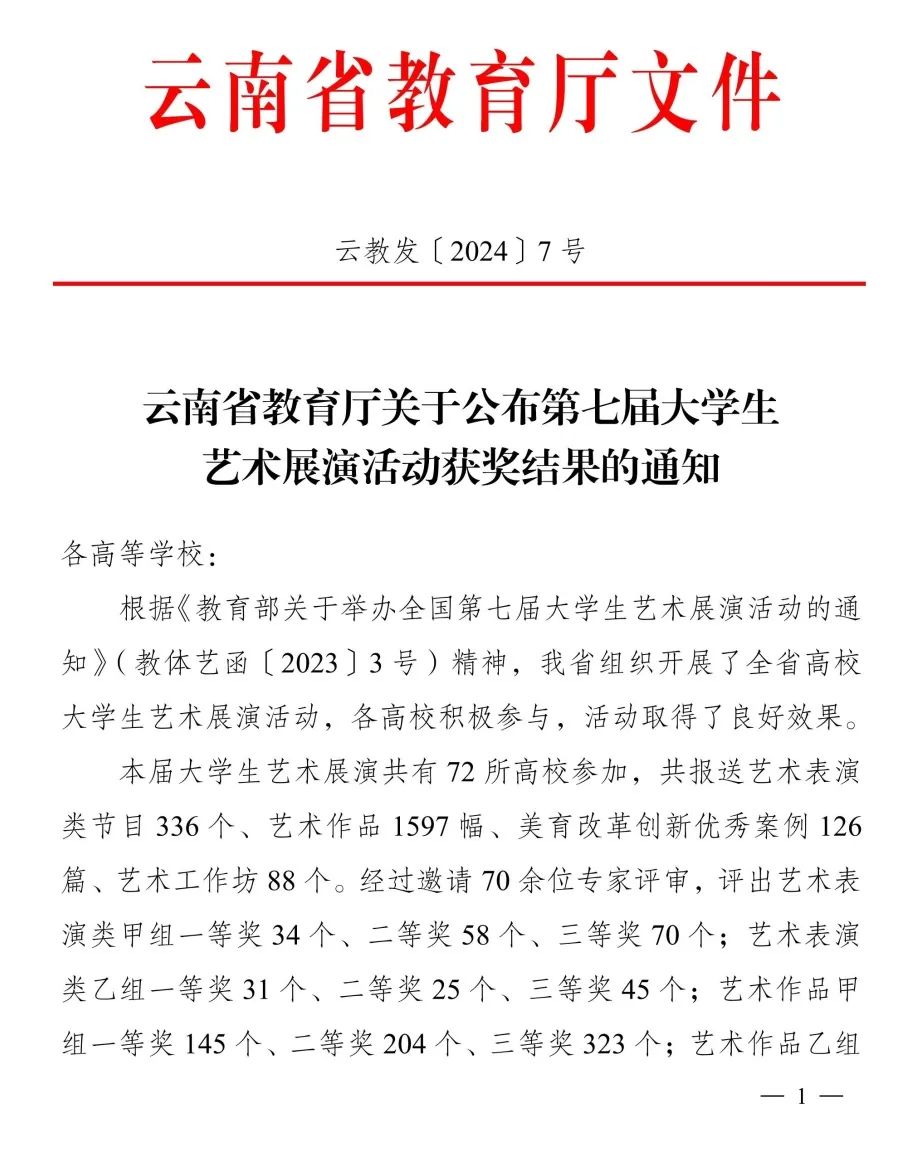 近日,云南省教育厅公布第七届老员工艺术展演活动获奖结果,公司52项作品获奖。