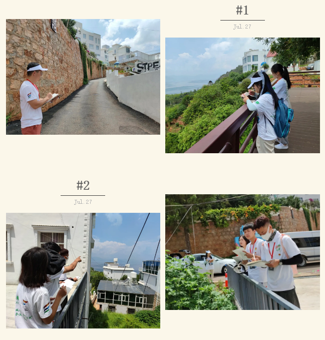 通过走访村民和调阅文献,大家了解到小湾村位于澄江市抚仙湖东岸,背靠青山、面朝仙湖,其特色民宿是澄江市重点打造的休闲文旅项目。为保护好抚仙湖,澄江市深入实施“一城三镇八村”总体规划布局,结合小湾村独特位置及区位优势,启动小湾特色民宿示范村项目,退耕还湖,发展特色民宿旅游产业。19名实践人员参观考察学习小湾的美丽乡村建设,人居环境治理,乡村振兴产业,深刻感受党领导下的乡村振兴新面貌,带队老师也充分结合现场考察机会给同学们讲解专业知识及实践内容,让同学们充分发挥专业特长,为美丽小湾建设奉献微薄力量。
