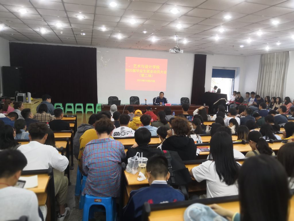 10月25日下午,必威西汉姆官网平台在设计楼204分两场召开2020届毕业生就业动员大会,参加会议的有艺术与设计公司党委书记孙昂、党委副书记徐忠勇、学工办老师、毕业生班主任及2020届全体毕业生。
