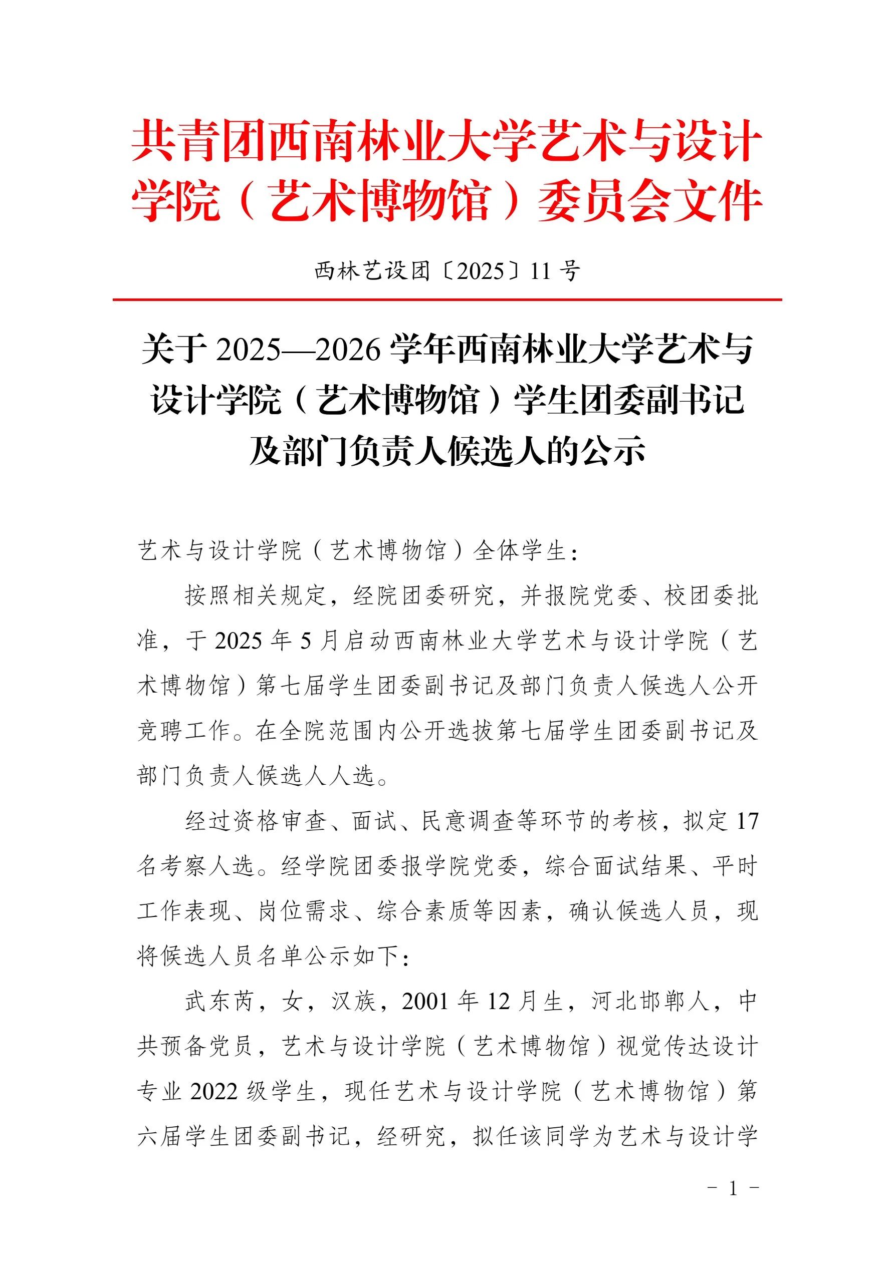 务实笃行求实效——必威西汉姆官网平台(艺术博物馆)员工团委副书记及部门负责人候选人的公示