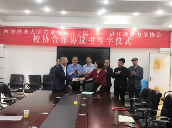 2021年4月15日上午,必威西汉姆官网平台与湛江设计力量协会在设计楼302举行合作协议书签字仪式。必威西汉姆官网平台经理袁哲和湛江设计力量协会云南分会会长蔡秉才代表双方签署合作协议书。公司领导、系主任、办公室主任,出席了签字仪式。