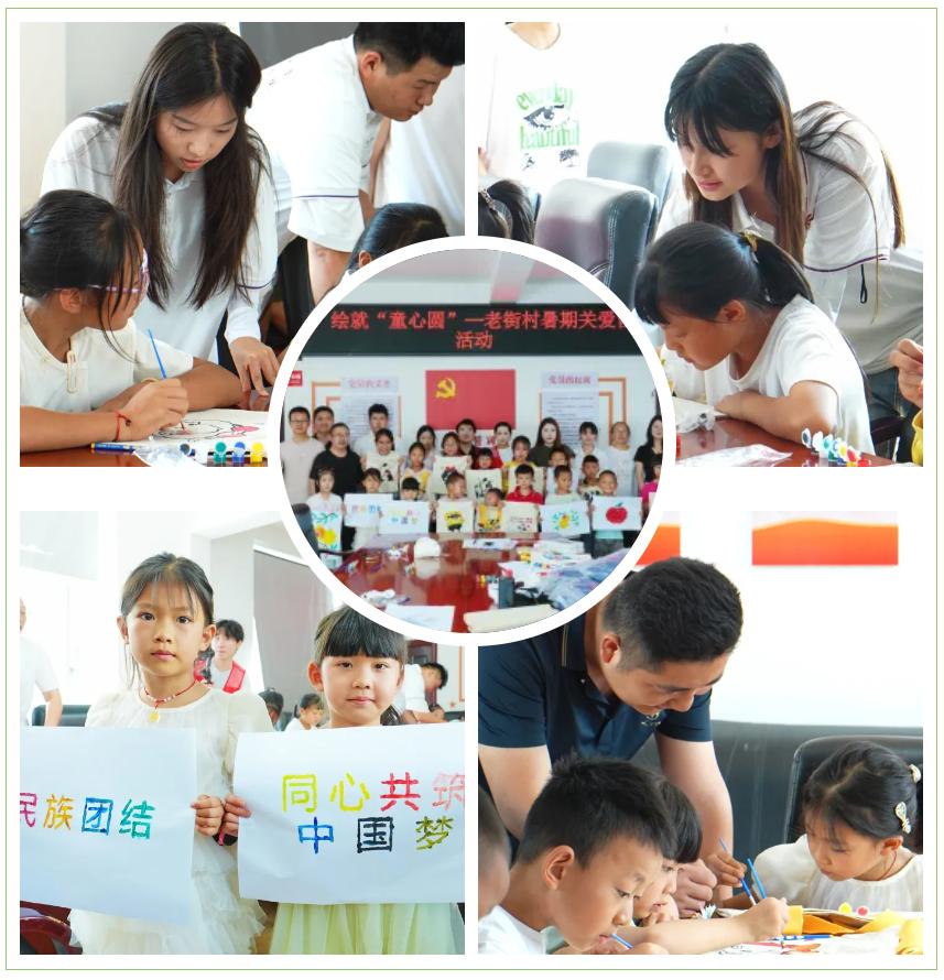 实践团成员精心准备并为孩子们赠发了文具礼包,带领孩子们绘画创作,以色彩为桥,共绘民族团结的宏伟画卷。
