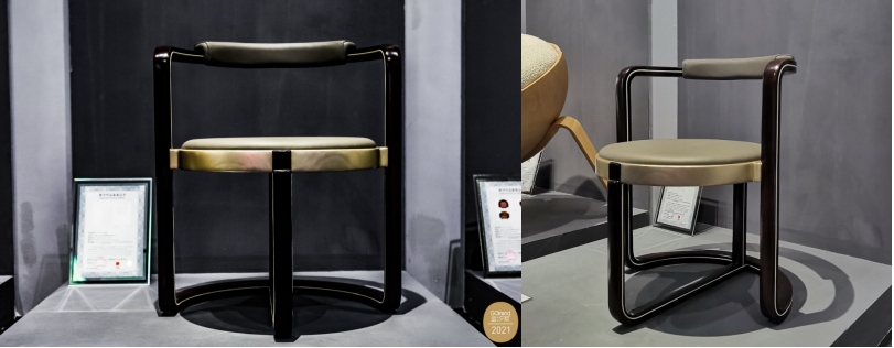 作品“圆漫”的设计灵感源于中国传统文化思想中的“天圆地方”。圆,是中国道家通变、趋时的学问;方,是中国儒家人格修养的理想境界。“智欲其圆道,行欲其方正”。圆方互容,儒道互补,构成了中国传统文化的主体精神。圆和方是最基本的几何图形,圆形有柔和圆满之美,方形有工整方正之美,圆和方体现了刚柔并兼之美。椅子整体造型以圆形为主,腿部断面采用方形,从而体现圆方互容,寓意浪漫生活与慢节奏生活。