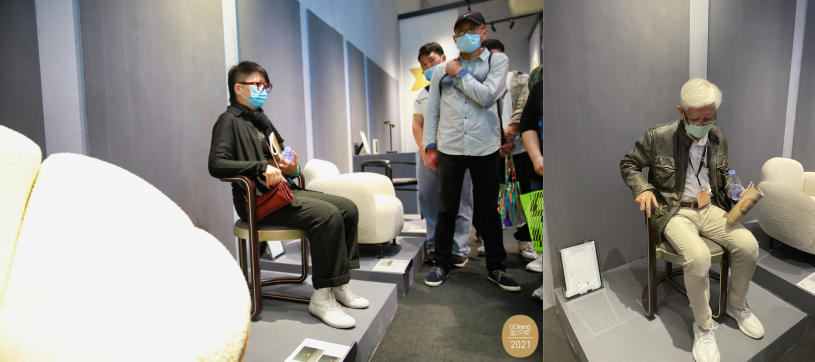 图4 清华大学美术公司柳冠中教授体验“圆漫”椅